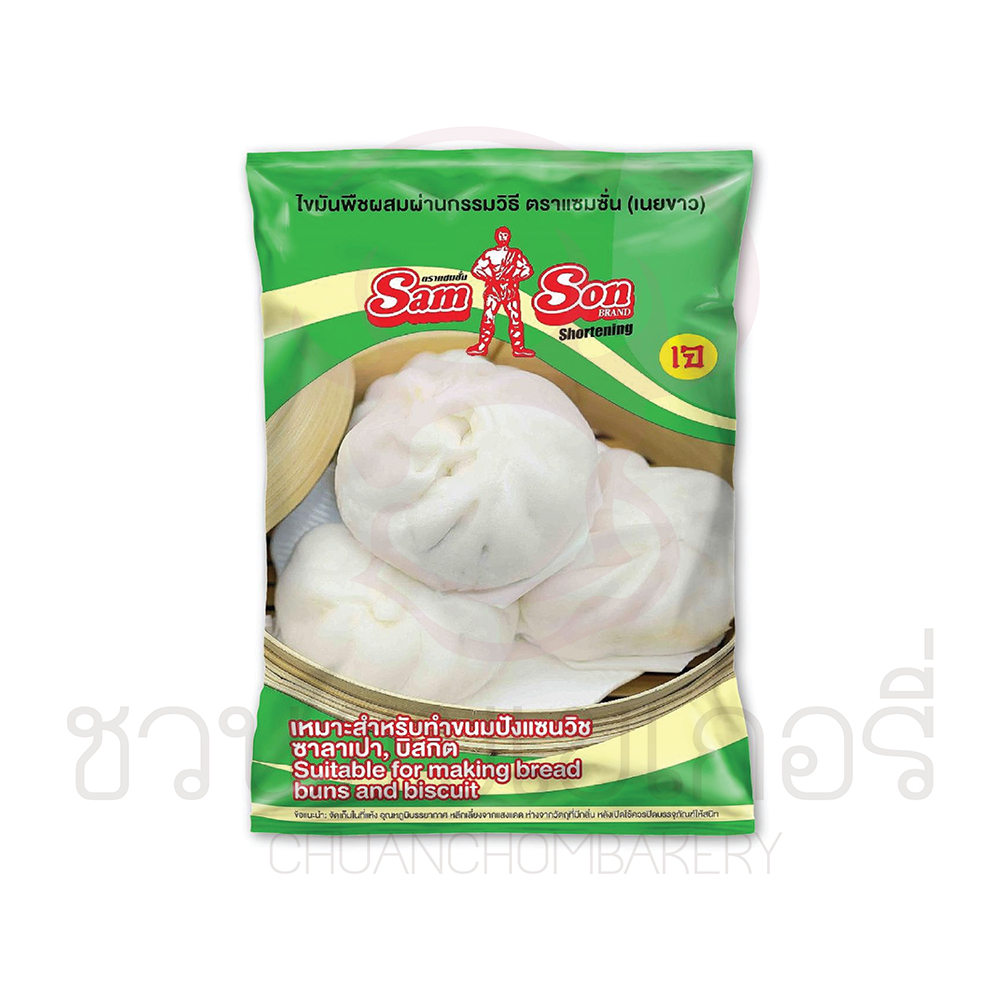 ซมซั่น เนยขาว 1 กิโลกรัม เป็นผลิตภัณฑ์ไขมันพืชผสมที่เหมาะสำหรับใช้ในอุตสาหกรรมเบเกอรี่ เช่น ทำเค้ก ขนมปัง คุกกี้ หรือใช้ทาขนมปังและพิมพ์ขนม
